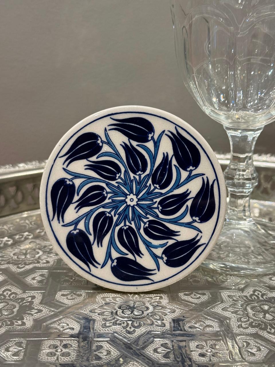 Porta Copos - Descanso Turco - Cerâmica - Branco e Azul