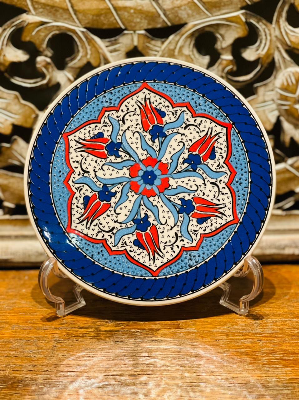 Descanso de Travessa e Panela - Turco - Redondo - Cerâmica - Azul e Vermelho