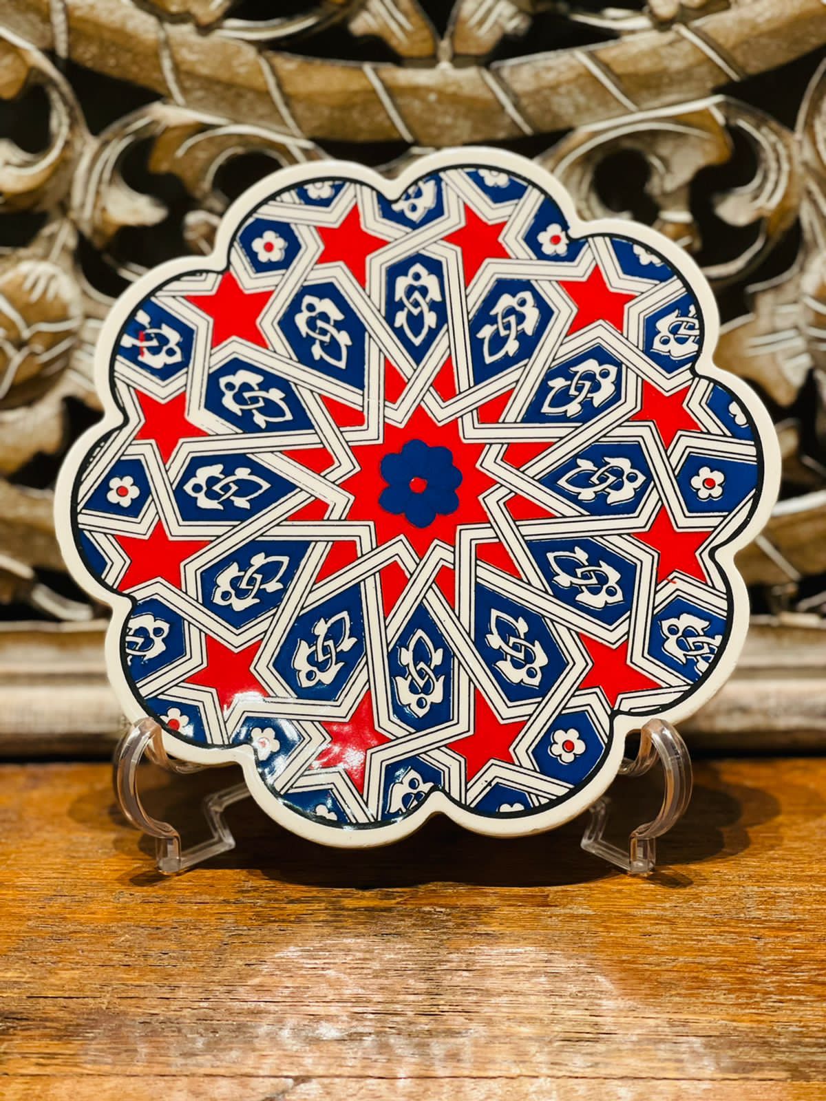 Descanso de Travessa e Panela - Turco - Cerâmica - Branco, Azul e Vermelho
