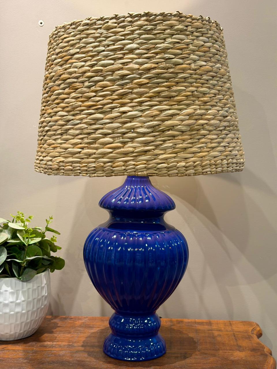 Abajur - Cerâmica - Azul com Cúpula de Palha