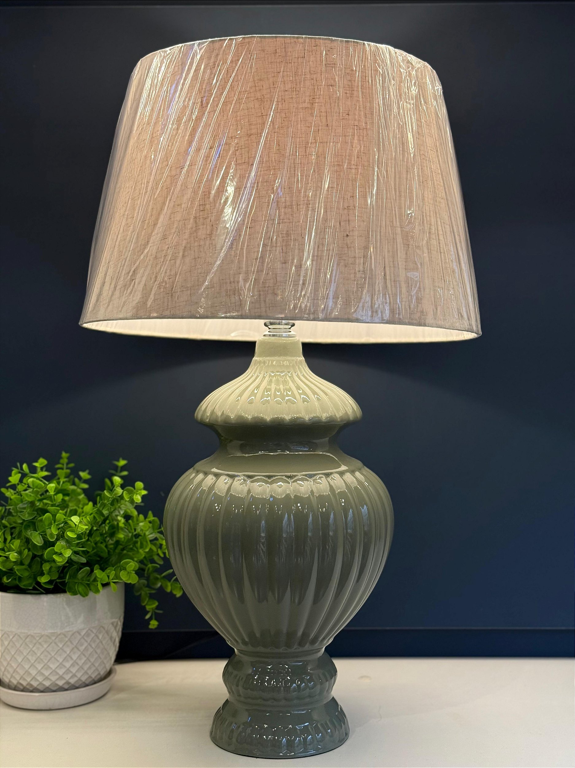Abajur - Cerâmica - Verde com Cúpula