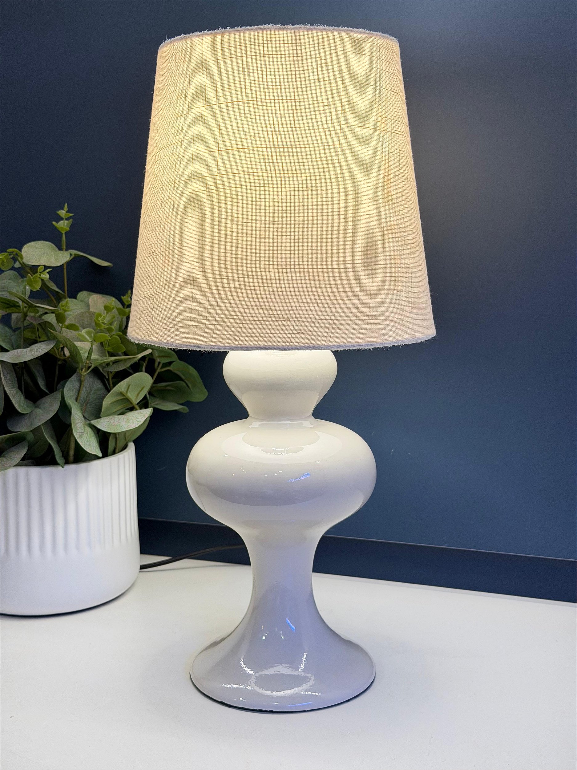 Este abajur é uma peça que une delicadeza e personalidade, ideal para quem busca uma iluminação acolhedora com forte apelo decorativo. Sua base em cerâmica esmaltada, elegante e atemporal. A cúpula proporciona um ambiente aconchegante e sofisticado, tornando a peça perfeita para salas, quartos, aparadores ou mesas laterais.