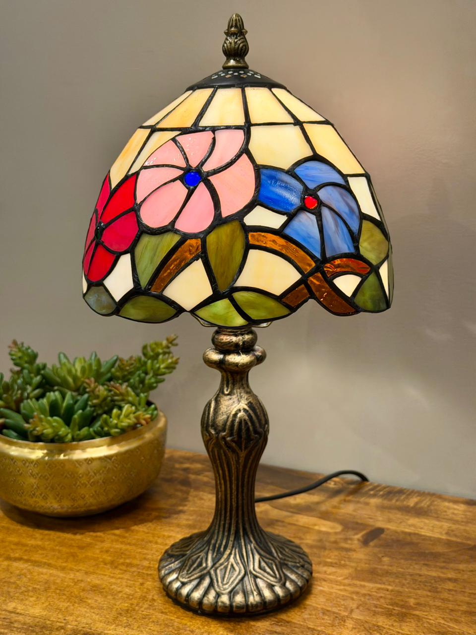 O Abajur Tiffany em vitral é uma peça atemporal que transforma a iluminação em um verdadeiro elemento decorativo. Seu domo em vitral colorido, composto por delicados recortes em tons quentes e naturais, cria um efeito de luz acolhedor e sofisticado, valorizando o ambiente com charme e personalidade.