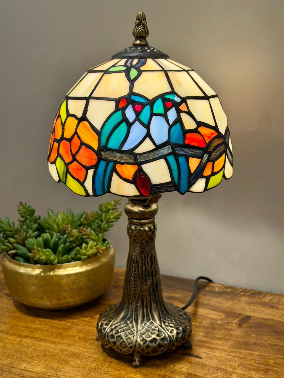 O Abajur Tiffany em vitral é uma peça atemporal que transforma a iluminação em um verdadeiro elemento decorativo. Seu domo em vitral colorido, composto por delicados recortes em tons quentes e naturais, cria um efeito de luz acolhedor e sofisticado, valorizando o ambiente com charme e personalidade.