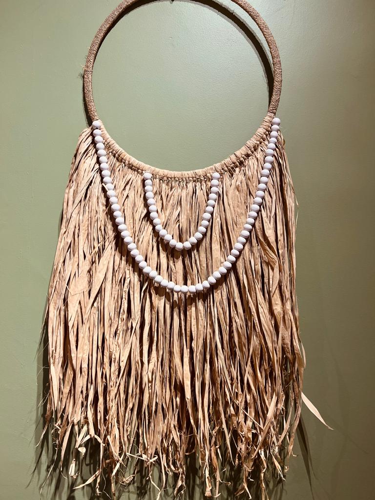 Adorno de parede decorativa em palha natural. Nossos adornos em fibras são finos e elegantes.