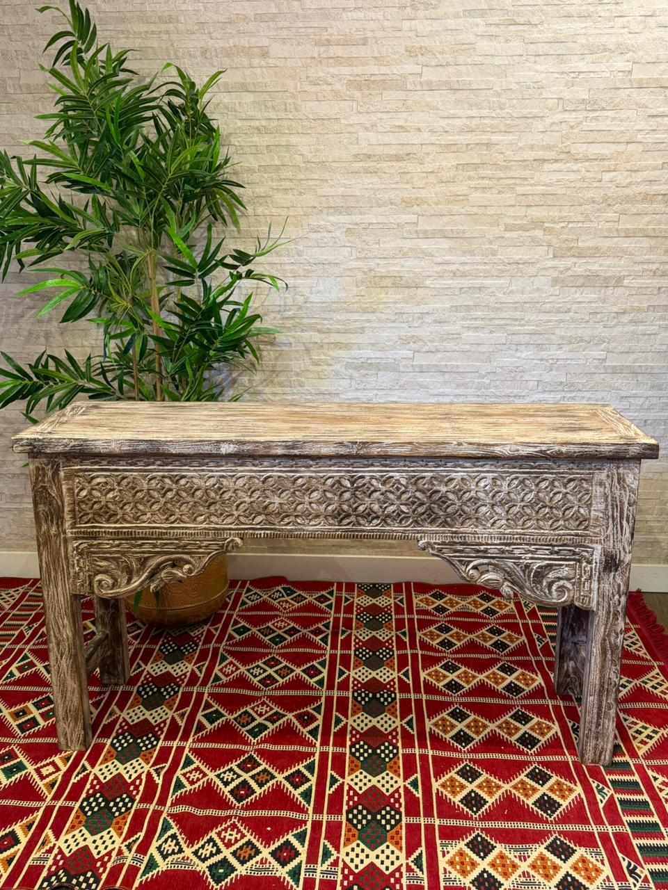 Encanto para quem ama decoração com alma. Este aparador Indiano é inteiramente trabalhado em madeira e recebe delicados desenhos pintados à mão, trazendo o charme e a autenticidade do artesanato.