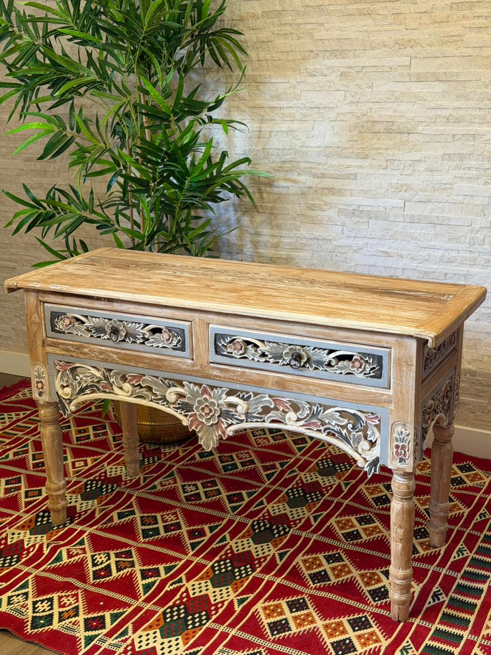 Encanto para quem ama decoração com alma. Este aparador Indiano é inteiramente trabalhado em madeira e recebe delicados desenhos pintados à mão, trazendo o charme e a autenticidade do artesanato.