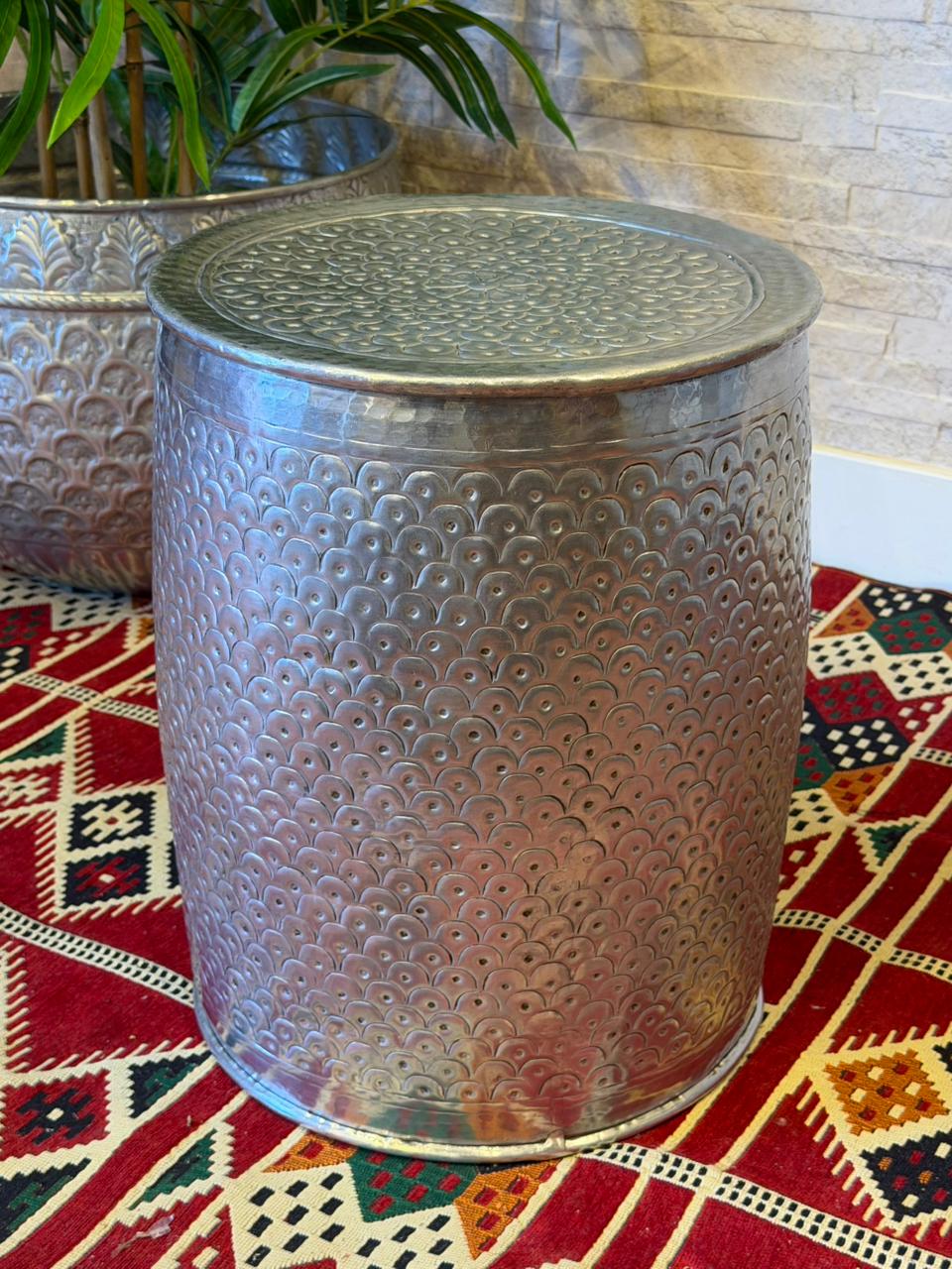 Versátil e elegante, pode ser utilizado como banquinho, mesa lateral, apoio decorativo em ambientes internos ou externos cobertos. O alumínio garante leveza, resistência e durabilidade, enquanto o processo artesanal torna cada peça exclusiva, com pequenas variações que reforçam sua autenticidade.