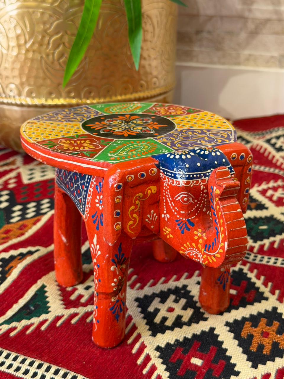 Banqueta - Elefante - Madeira - Pintado à mão - Laranja e Colorido - 16cm