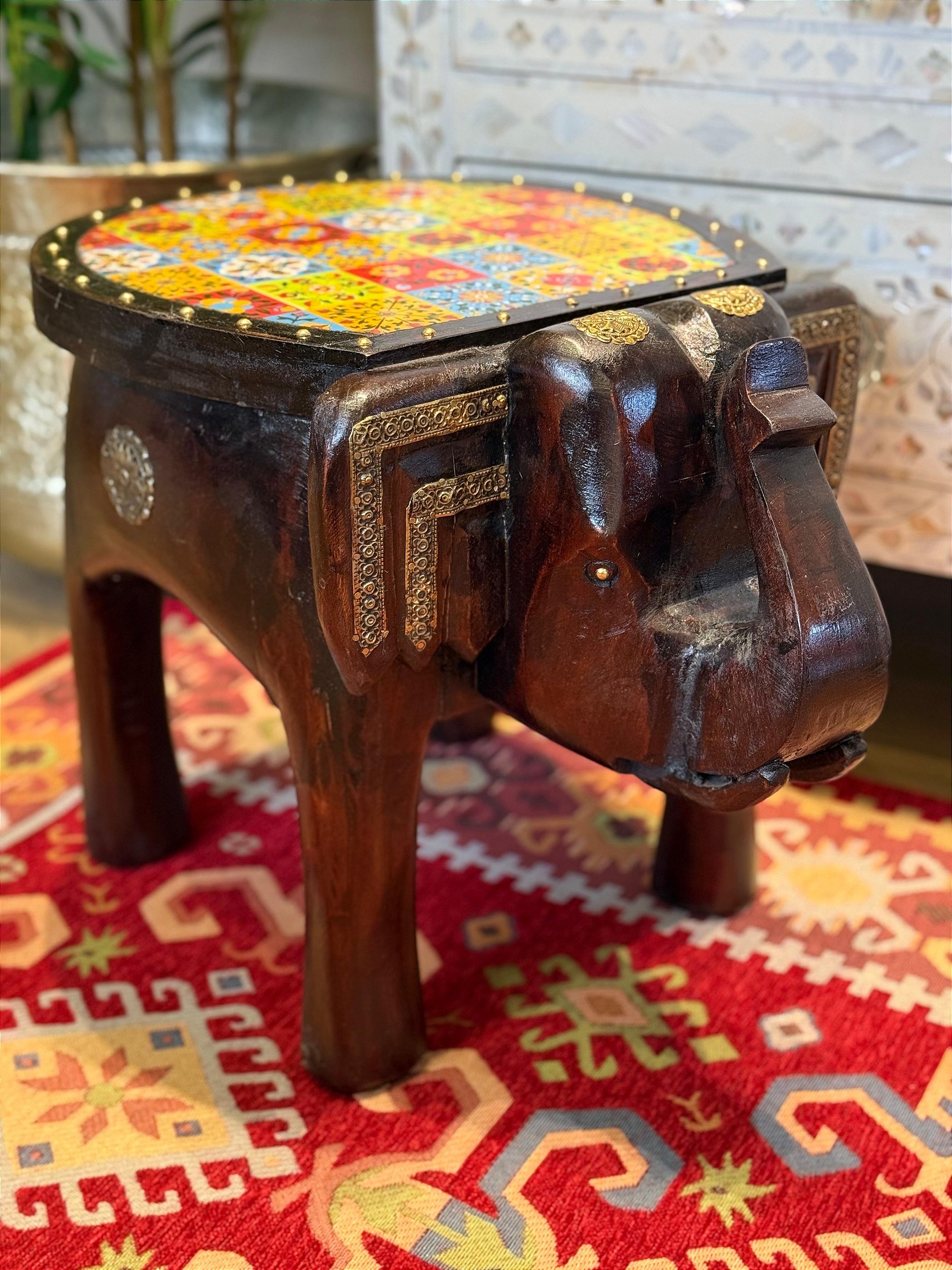 Nossas banquetas indianas são pintadas à mão trazendo exuberância e elegância ao seu ambiente.