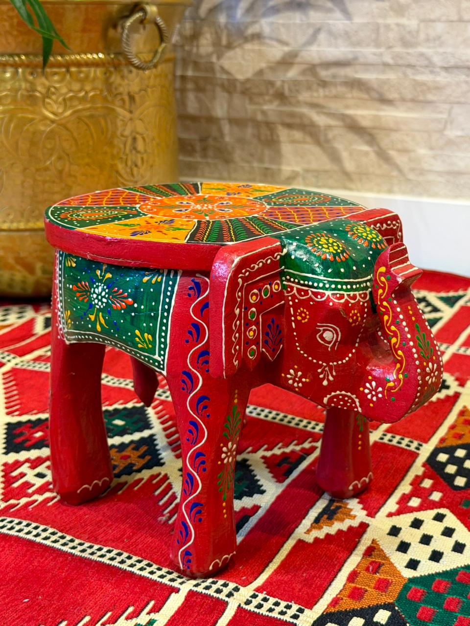 Nossas banquetas indianas são pintadas à mão trazendo exuberância e elegância ao seu ambiente.