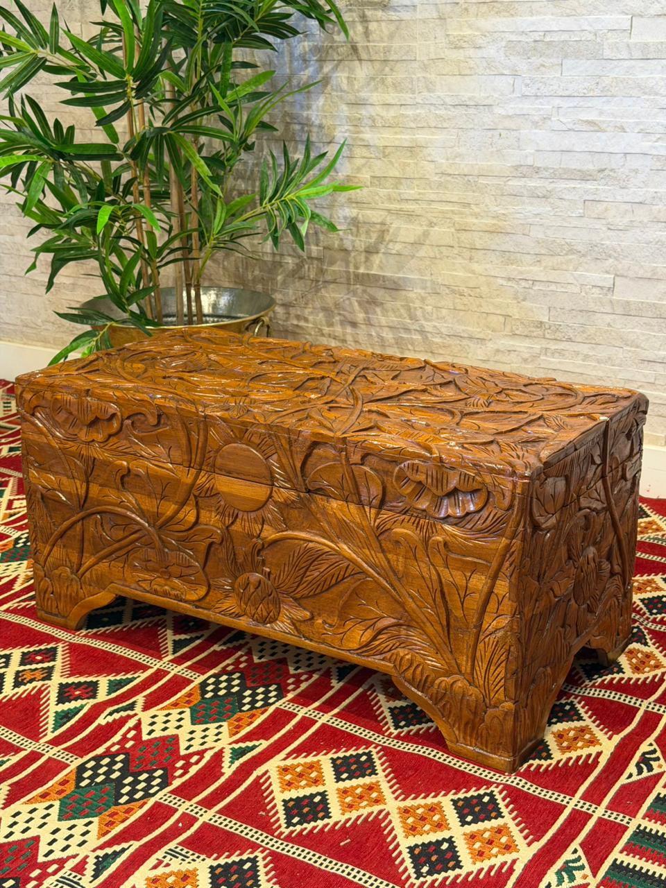 Encanto para quem ama decoração com alma. Este baú Indiano é inteiramente trabalhado em madeira e recebe delicados desenhos pintados à mão, trazendo o charme e a autenticidade do artesanato.