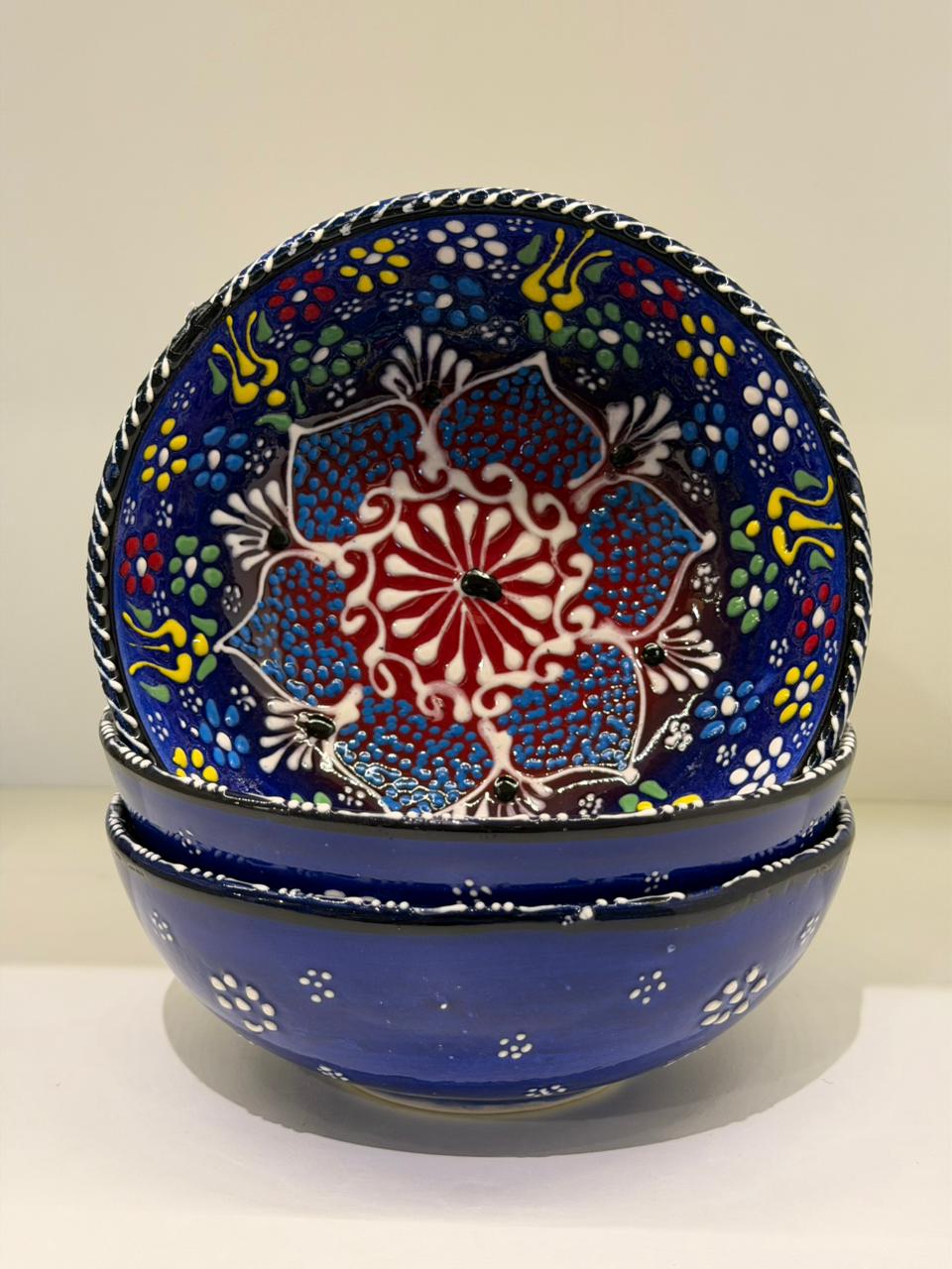 Autênticos bowls artesanais da Turquia, cuidadosamente pintados à mão em alto-relevo, onde cada detalhe ganha textura, profundidade e personalidade. As cores vibrantes e os desenhos florais tradicionais refletem séculos de história e a riqueza da cerâmica turca, tornando cada peça única e exclusiva.