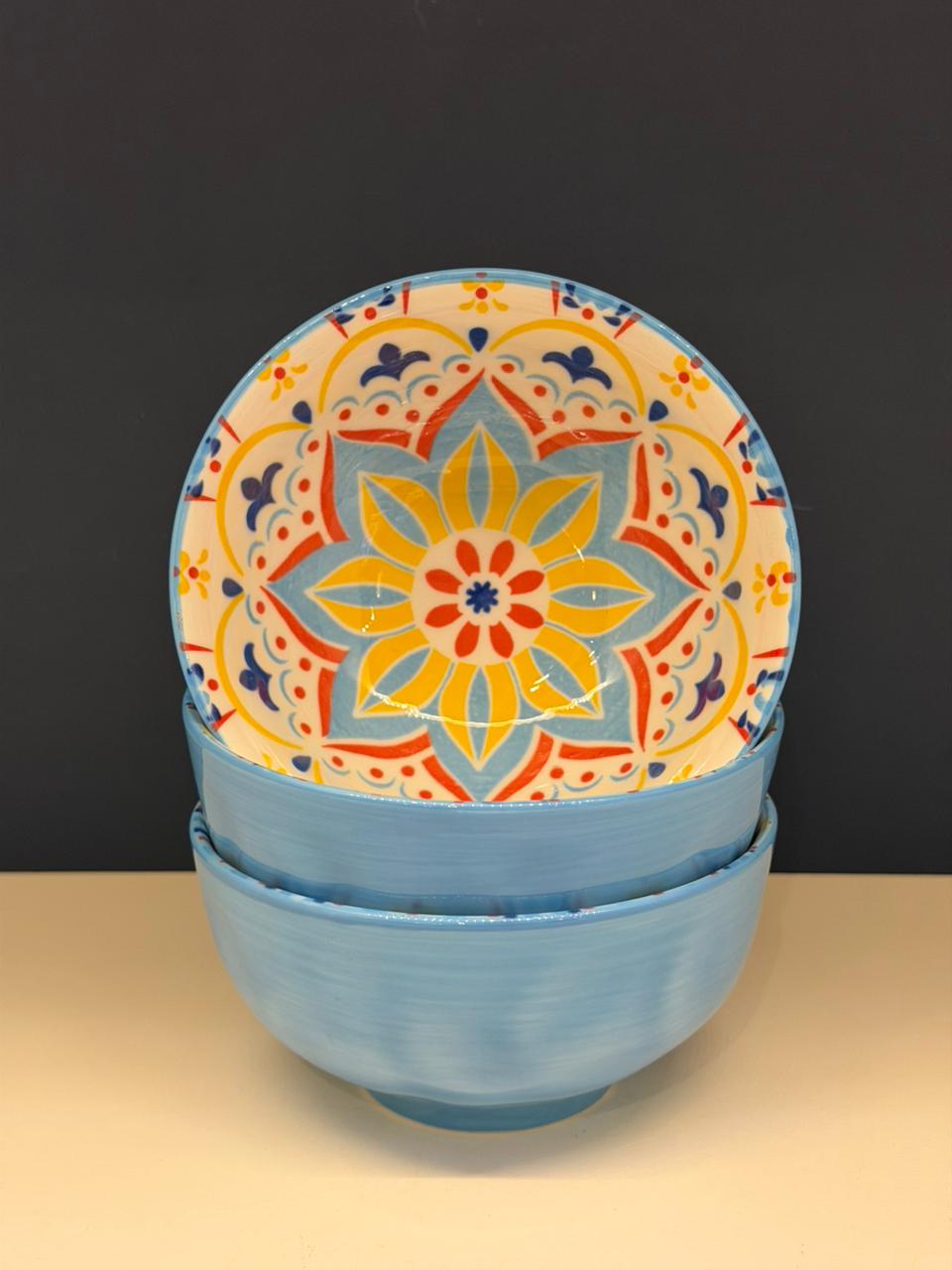 Bowl - Cerâmica - Azul e Colorido - Tamanho Médio