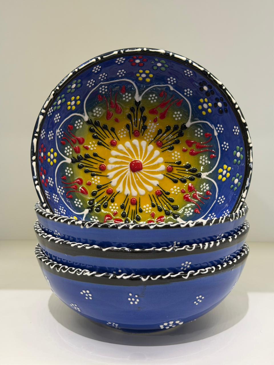 Autênticos bowls artesanais da Turquia, cuidadosamente pintados à mão em alto-relevo, onde cada detalhe ganha textura, profundidade e personalidade. As cores vibrantes e os desenhos florais tradicionais refletem séculos de história e a riqueza da cerâmica turca, tornando cada peça única e exclusiva.