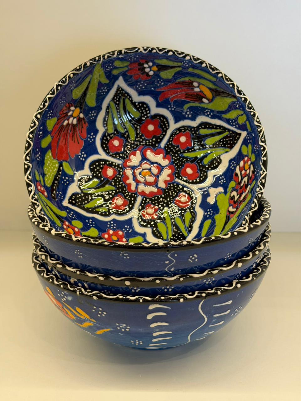 Autênticos bowls artesanais da Turquia, cuidadosamente pintados à mão em alto-relevo, onde cada detalhe ganha textura, profundidade e personalidade. As cores vibrantes e os desenhos florais tradicionais refletem séculos de história e a riqueza da cerâmica turca, tornando cada peça única e exclusiva.
