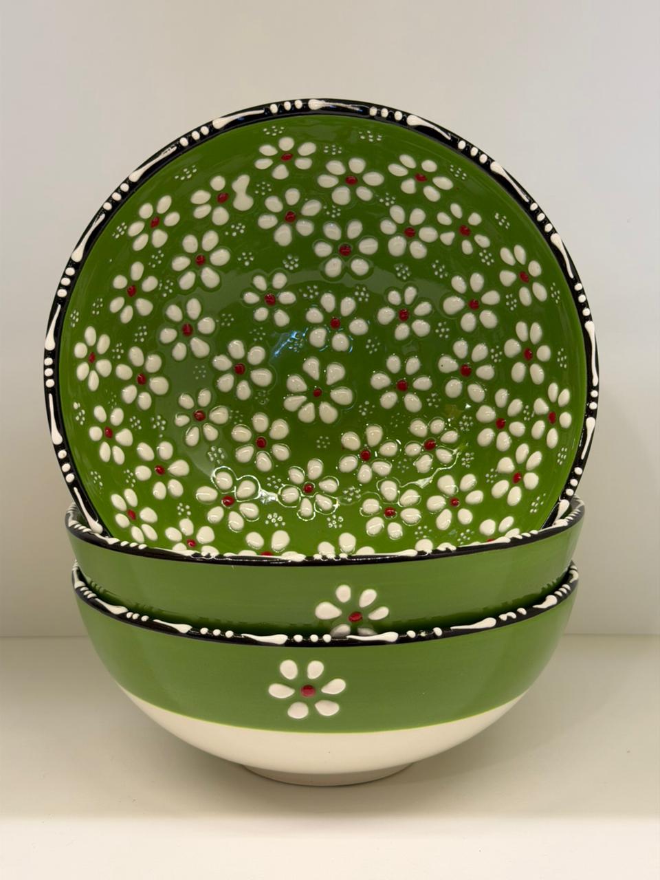 Bowl - Cerâmica - Turquia - Pintura Alto Relevo - Tamanho Grande - Verde