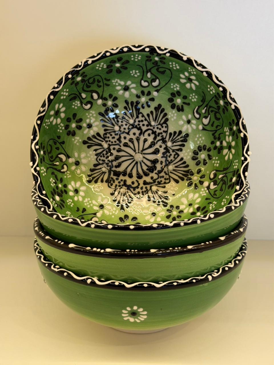 Bowl - Cerâmica - Turquia - Pintura Alto Relevo - Tamanho Grande - Verde Claro