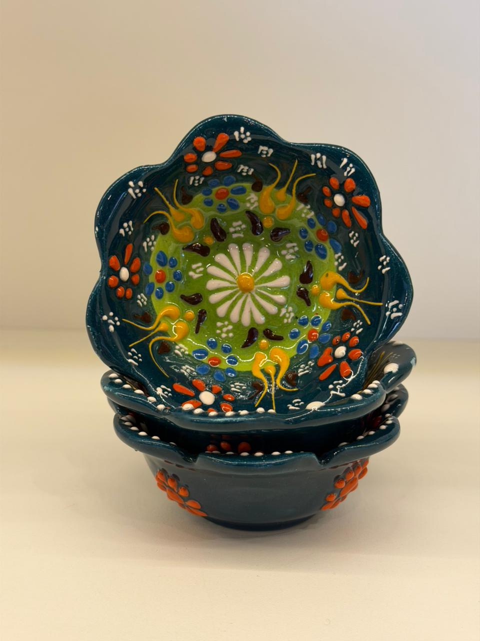Bowl - Cerâmica - Turquia - Pintura Alto Relevo - Tamanho Pequeno - Verde Escuro e Colorido