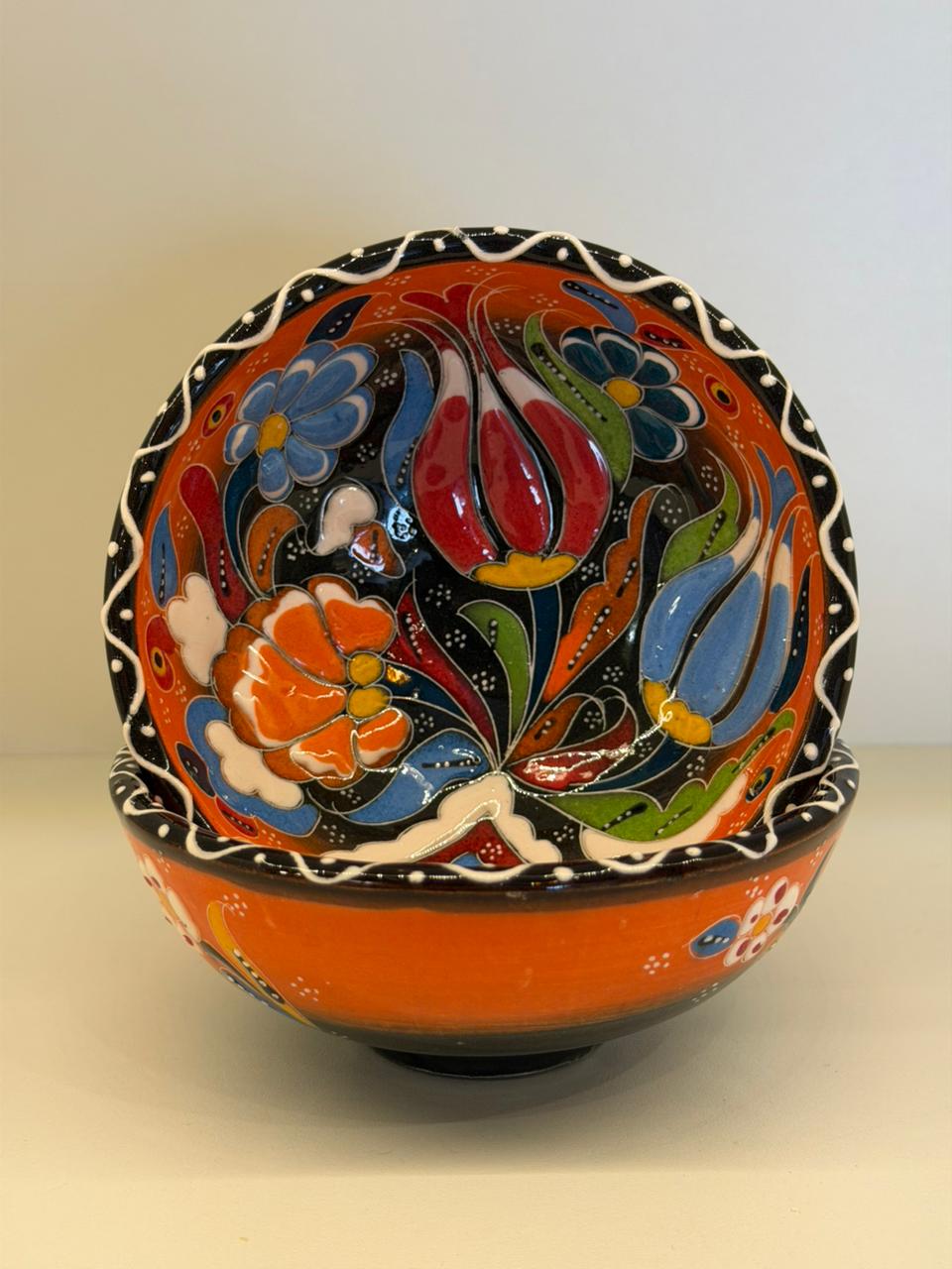 Este bowl em cerâmica, produzido artesanalmente na Turquia, é uma peça que une tradição, cor e autenticidade. Pintado à mão por artesãos locais, apresenta desenhos orgânicos e florais inspirados na arte turca, com uma combinação vibrante e detalhes em relevo que tornam cada peça única.