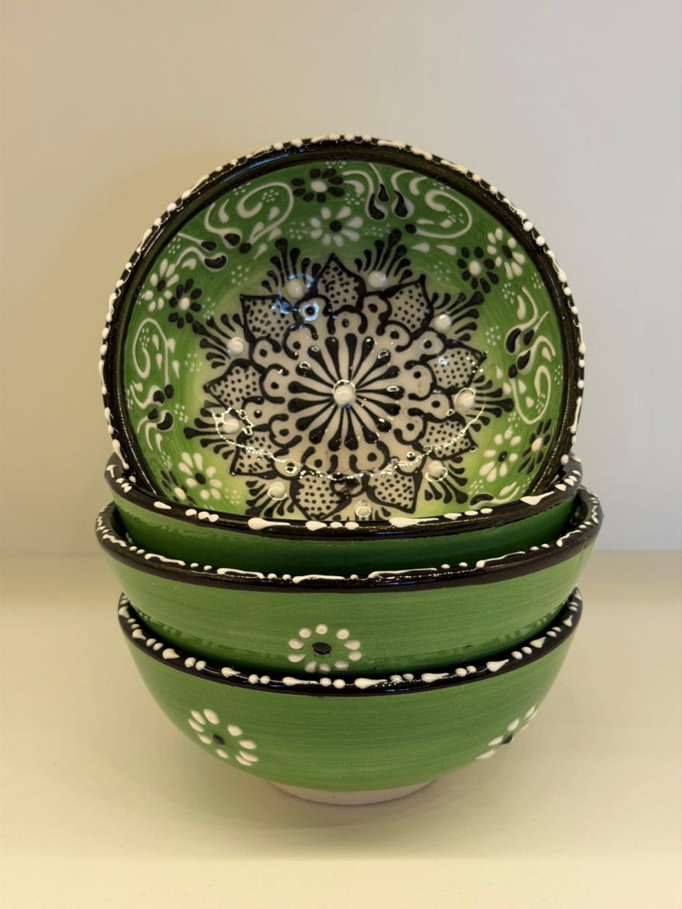 Bowl - Cerâmica - Turquia - Pintura Alto Relevo - Tamanho Médio - Verde Claro