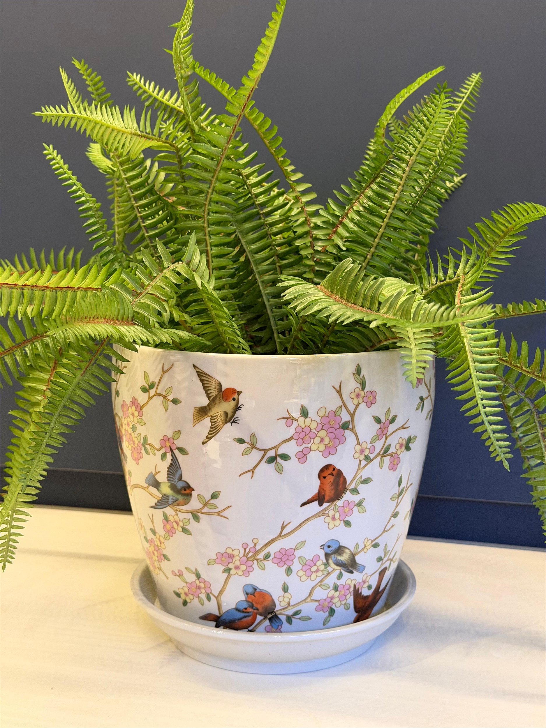Cachepot em Cerâmica - Pássaros - Colorido - 20CM
