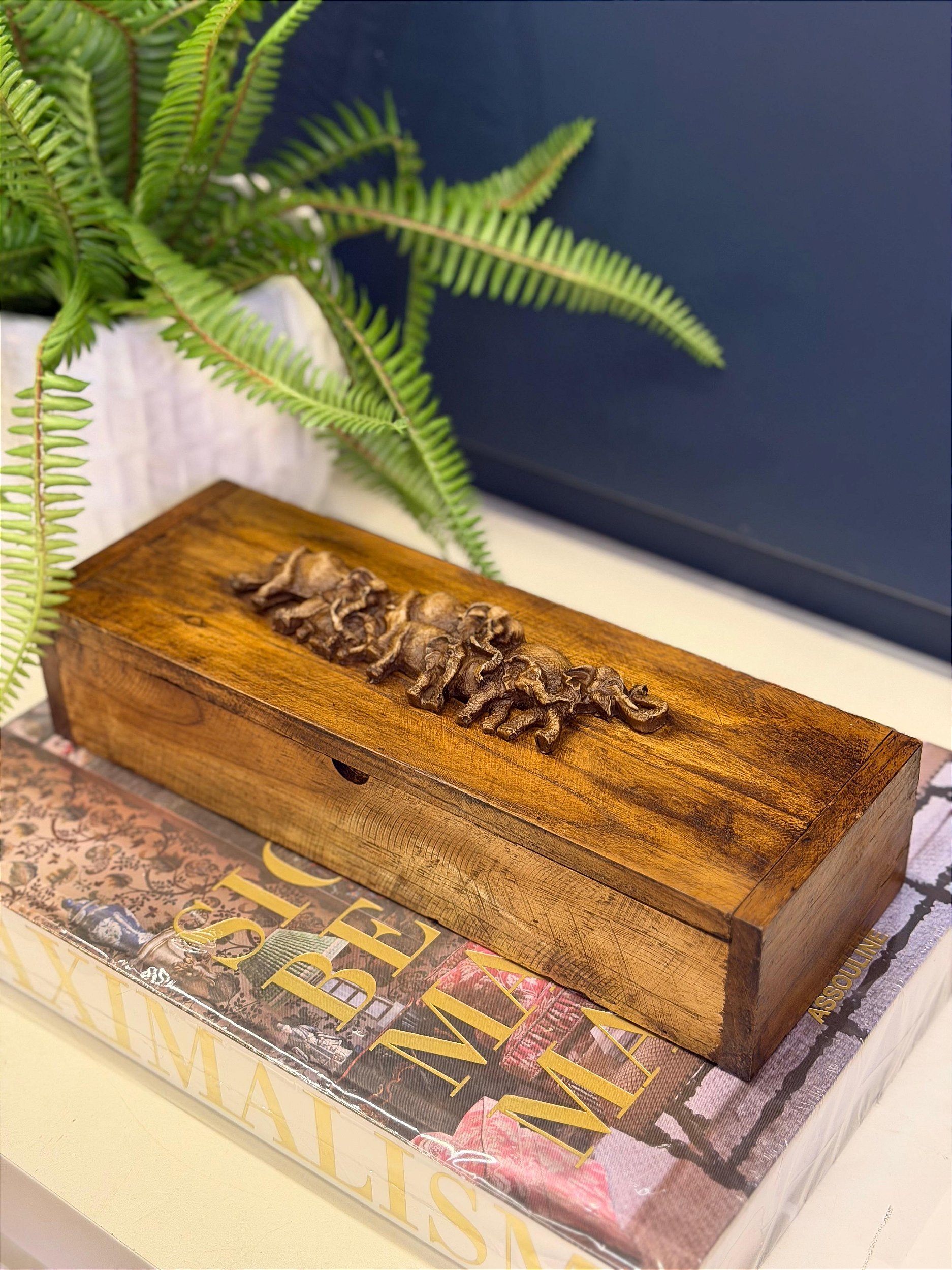Produzida em madeira, além de decorar, é extremamente funcional: perfeita para organizar pequenos objetos, acessórios, controles, lembranças ou itens do dia a dia, mantendo o ambiente elegante e bem organizado.
