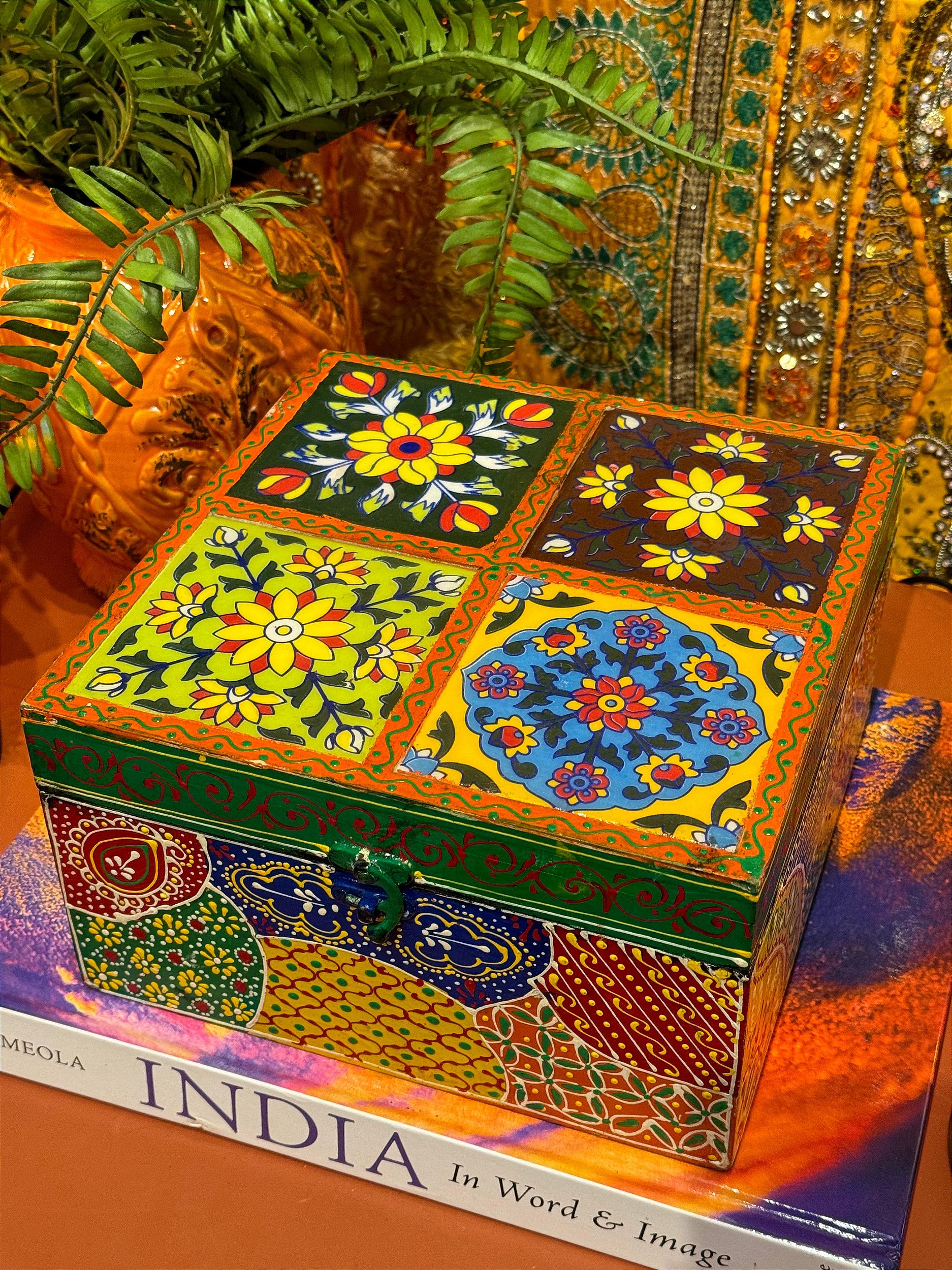 A caixa decorativa da Marrocos For You te ajudará a guardar seus itens mais preciosos. Feita de madeira e pintada a mão, é perfeita para guardar suas jóias, ou até mesmo como objeto de decoração da sala.