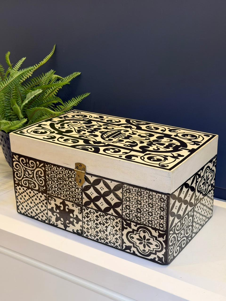 A caixa decorativa da Marrocos For You te ajudará a guardar seus itens mais preciosos. Feita de madeira e pintada a mão, é perfeita para guardar suas jóias, ou até mesmo como objeto de decoração da sala.