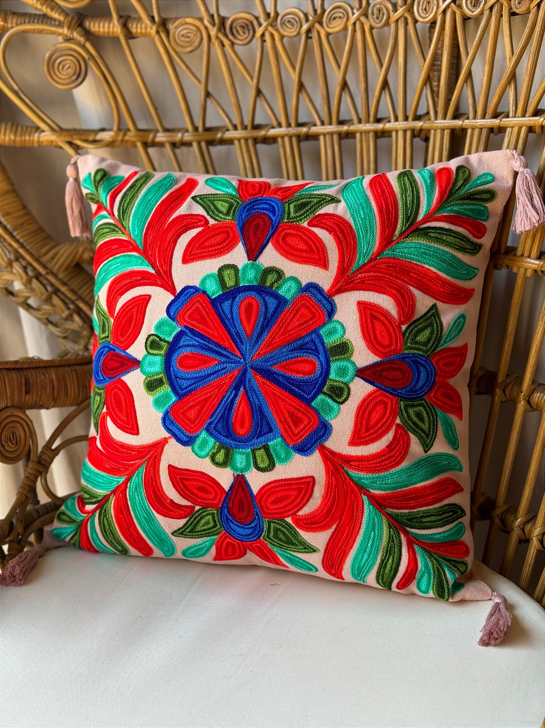 As capas de almofada são uma verdadeira peça artesanal feitas na Índia, rica em detalhes com o trabalho minusioso com bordado em brim e linhas de algodão, tornando cada peça única, com personalidade e sofisticação.