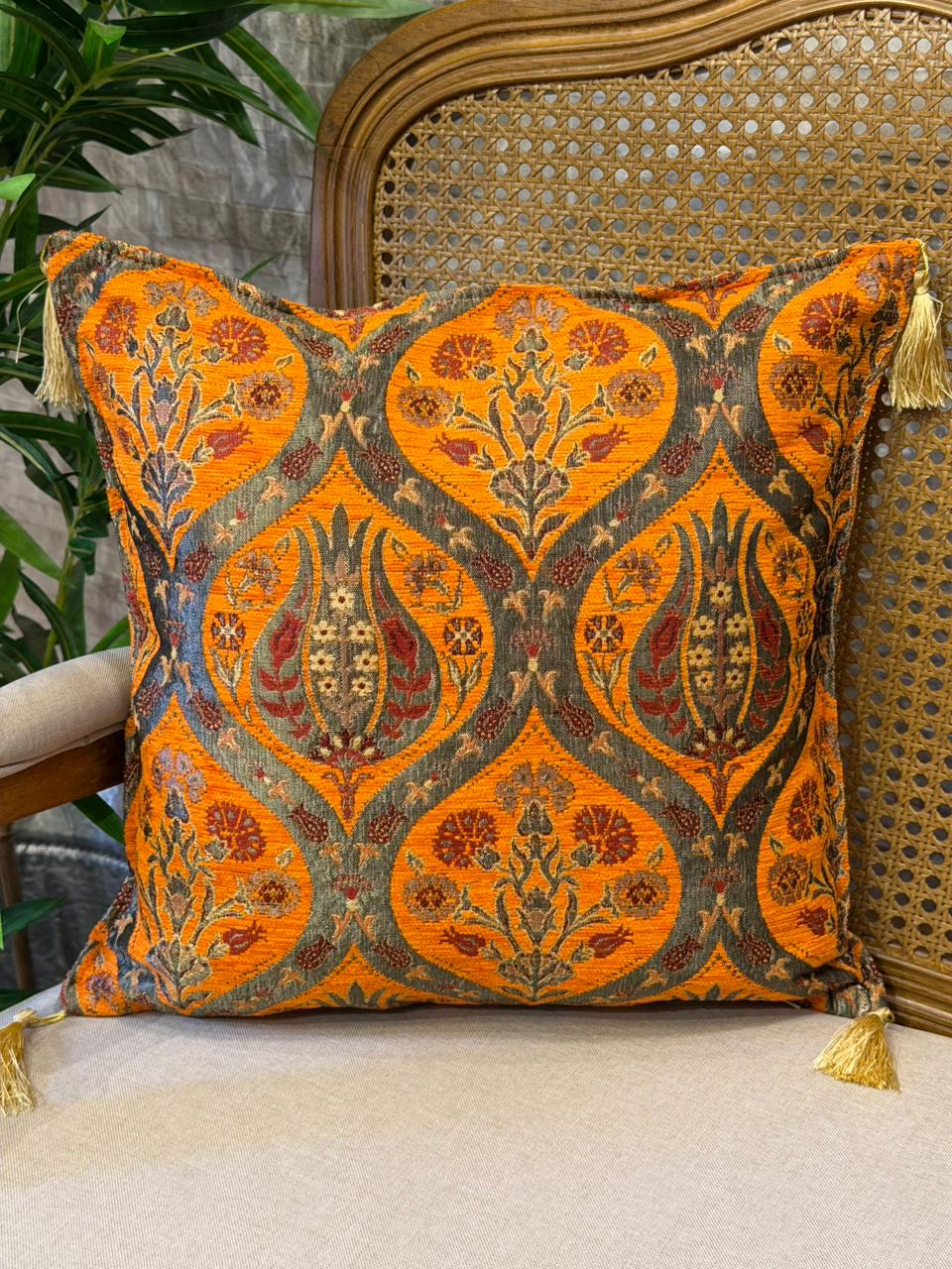 Capa Para Almofada - Jacquard - Tassel - Laranja