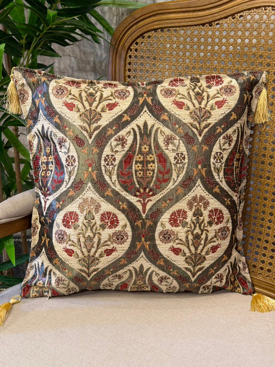 A Capa de Almofada em Jacquard da Turquia é uma peça que traduz tradição, riqueza cultural e sofisticação artesanal. Confeccionada em tecido jacquard de alta qualidade, ela apresenta desenhos geométricos inspirados em símbolos ancestrais do Oriente, com cores quentes e vibrantes que trazem personalidade e aconchego ao ambiente.