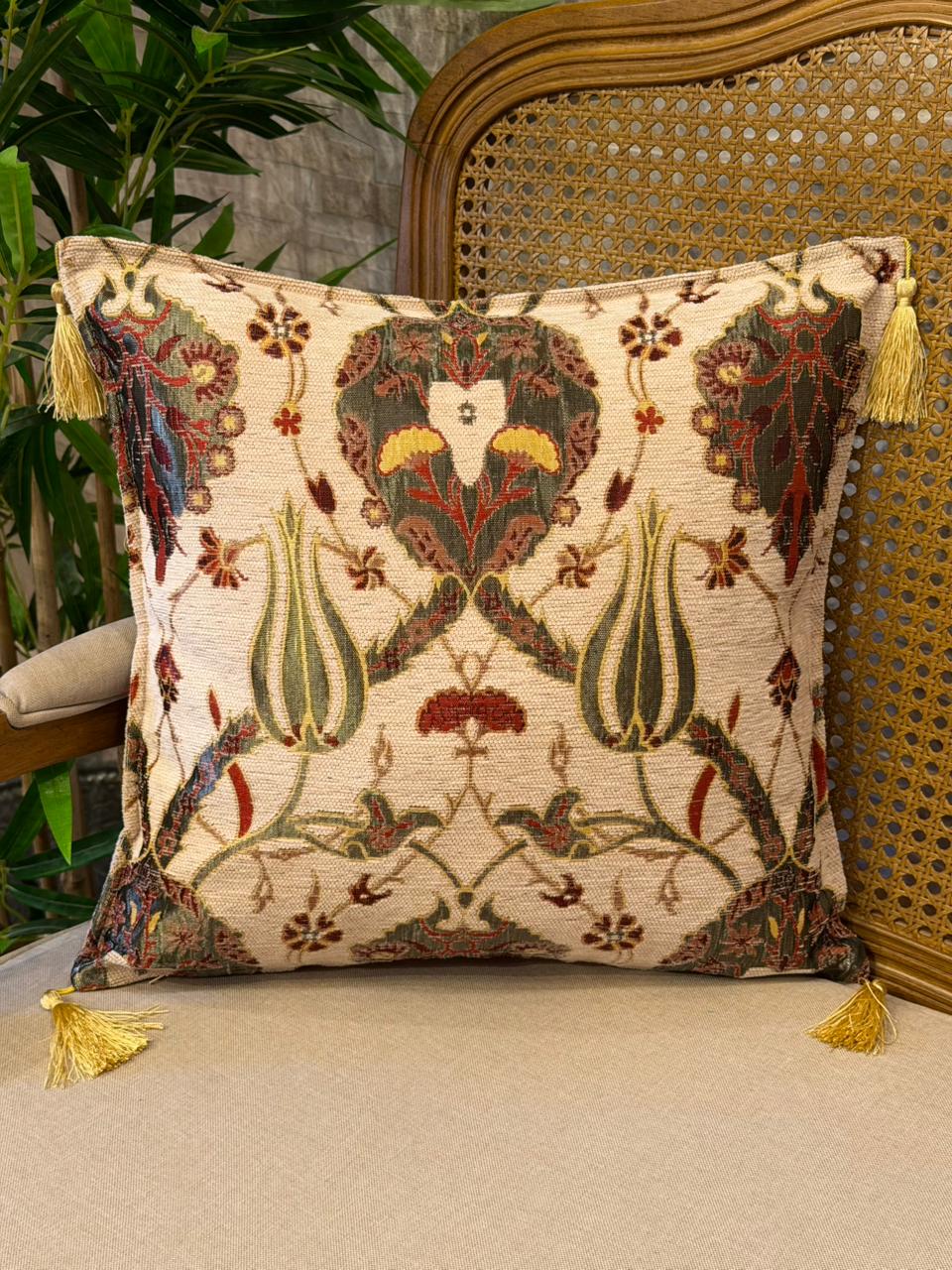 A Capa de Almofada em Jacquard da Turquia é uma peça que traduz tradição, riqueza cultural e sofisticação artesanal. Confeccionada em tecido jacquard de alta qualidade, ela apresenta desenhos geométricos inspirados em símbolos ancestrais do Oriente, com cores quentes e vibrantes que trazem personalidade e aconchego ao ambiente.