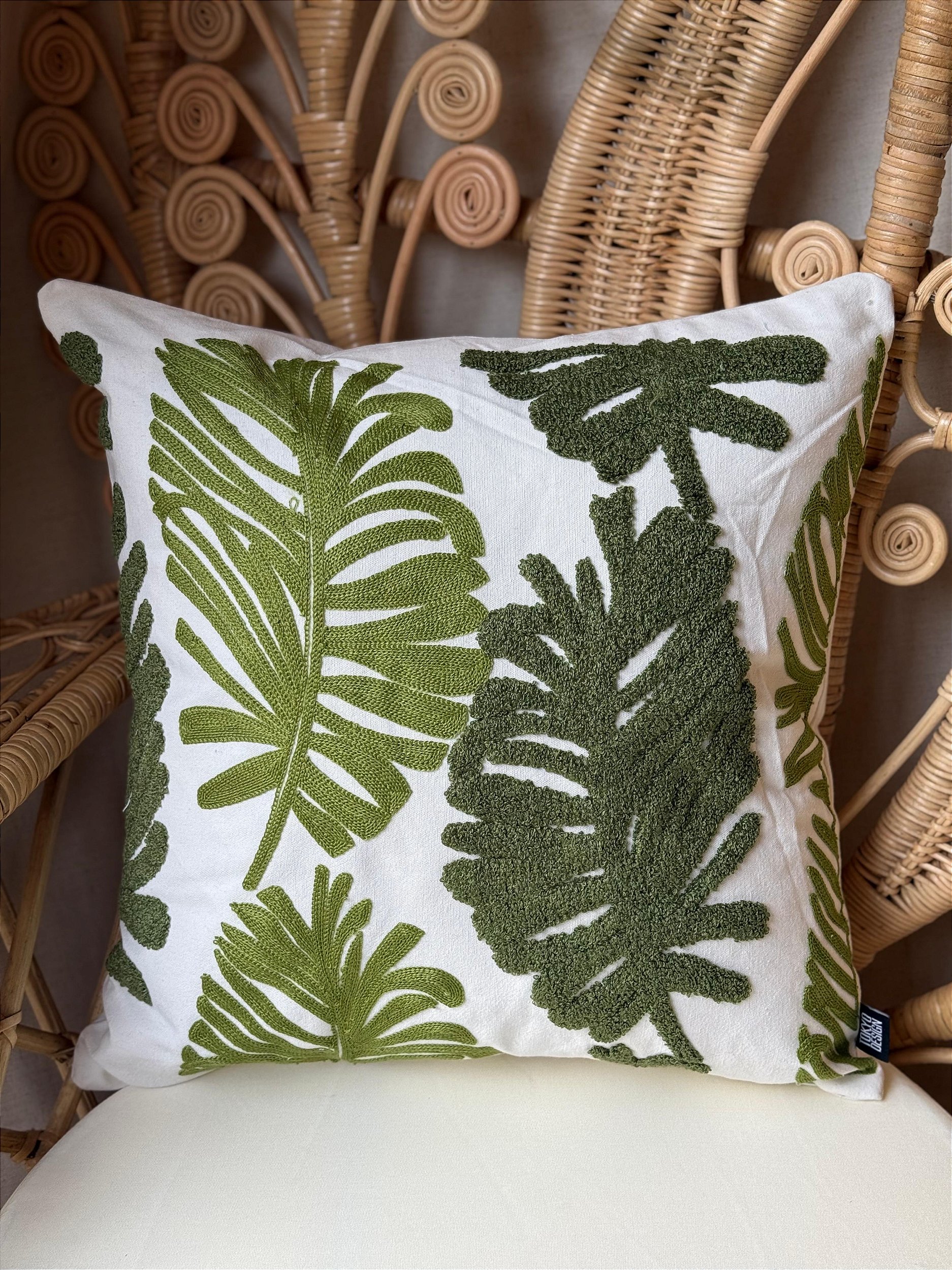 Capa Para Almofada - Bordada - Verde Folhas