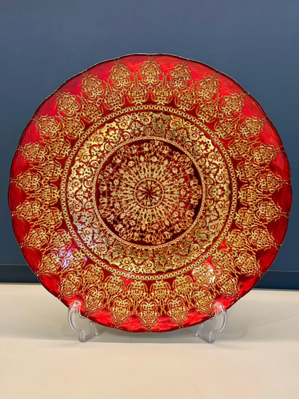 Centro de Mesa em Vitral - Vermelho e Dourado - Grande