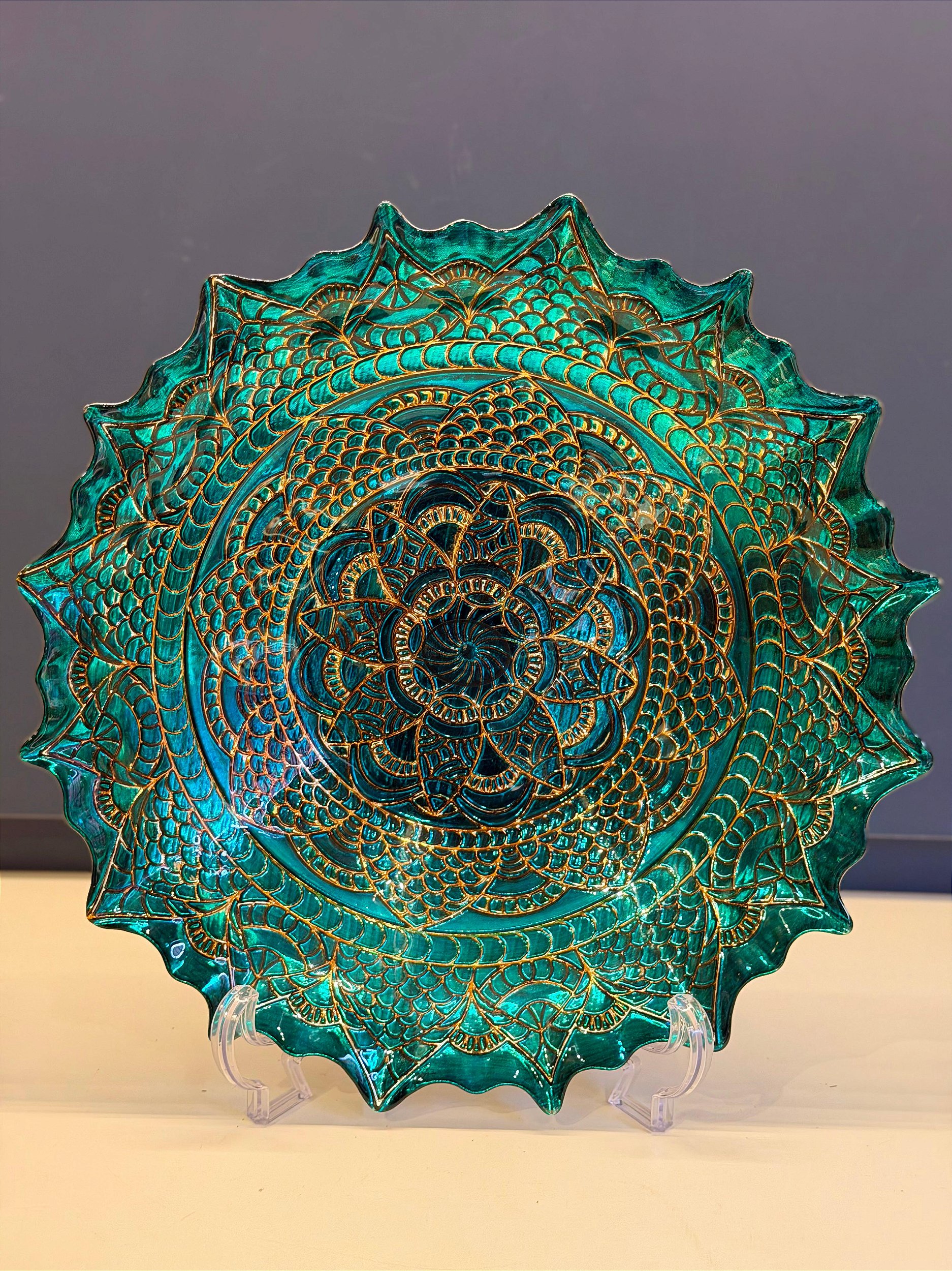 Centro de Mesa em Vitral - Verde e Dourado - Grande