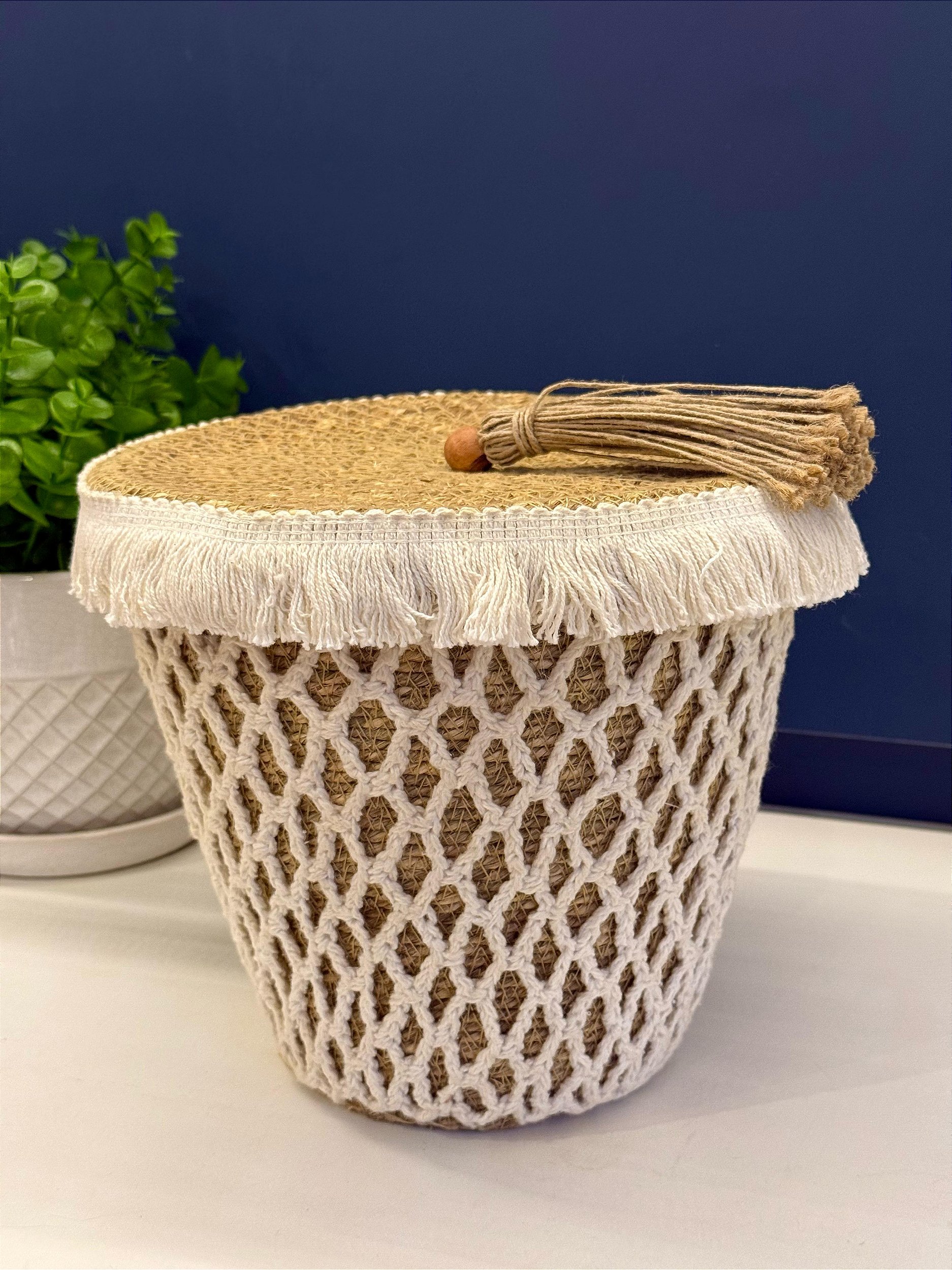 Cesto com Tampa - Fibra Natural - Branco - 20CM