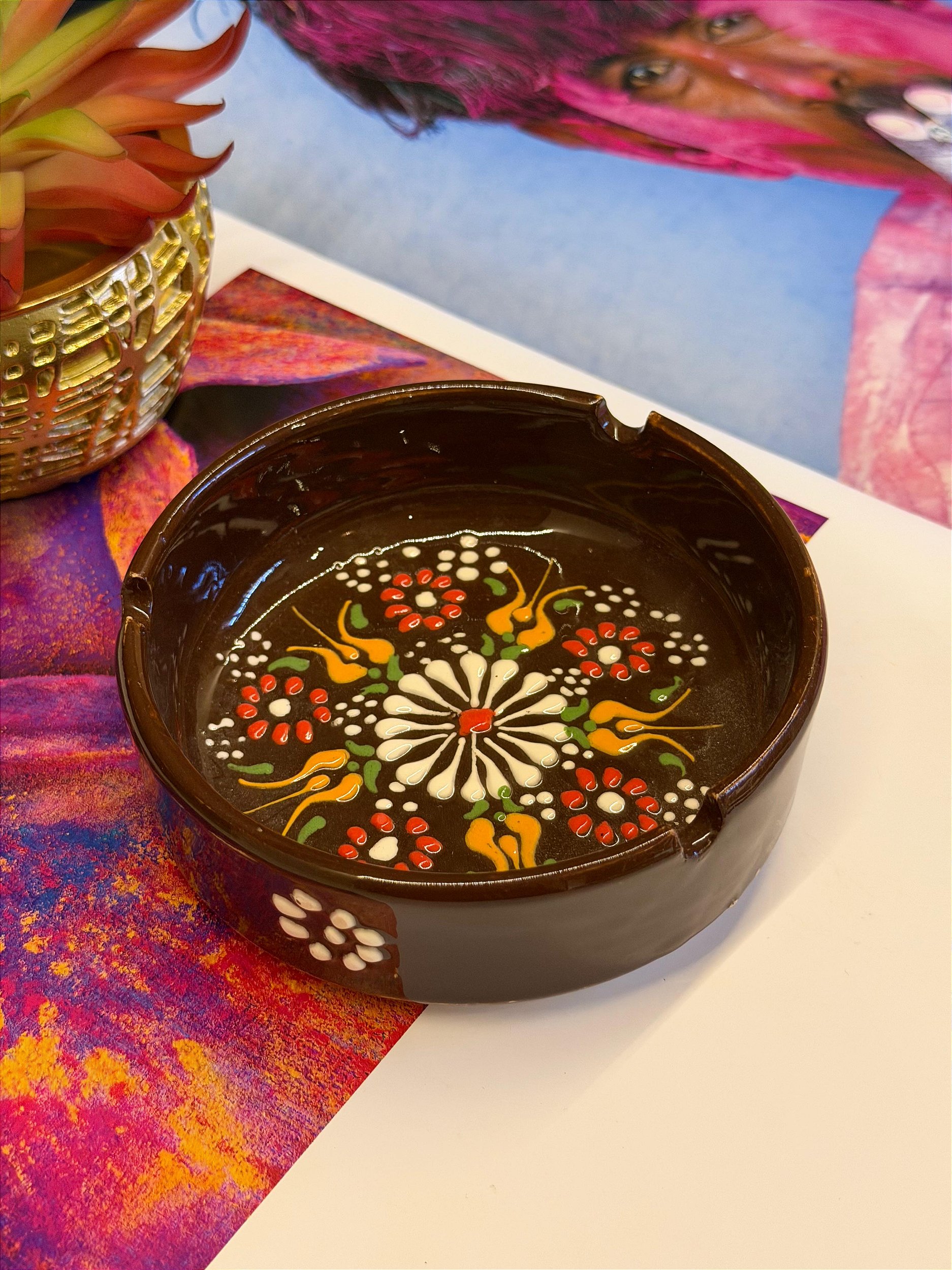 Nossos cinzeiros são pintados á mão e decoram o ambiente com suas cores e detalhes. São práticos para o uso diário.