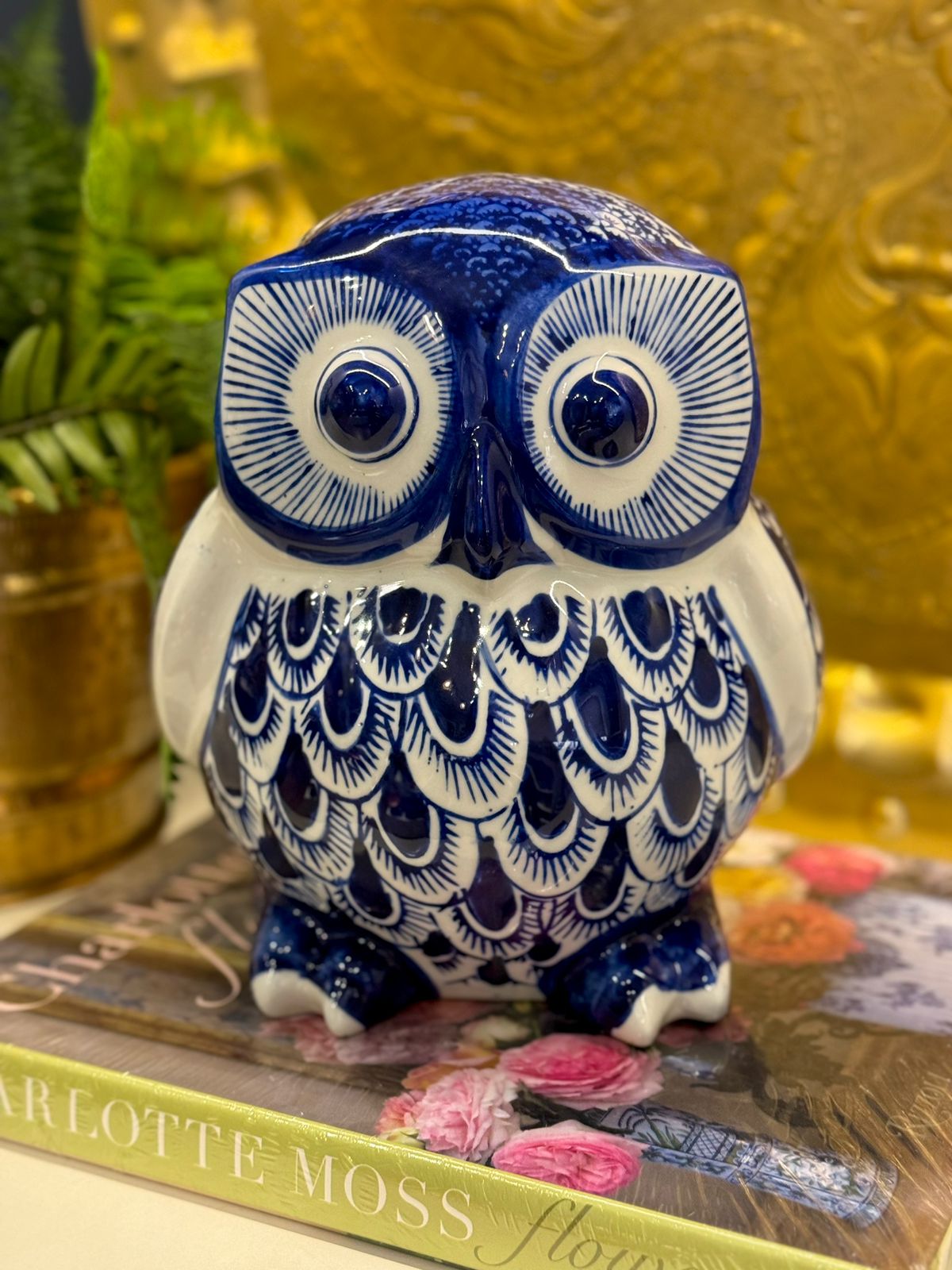 Coruja - Decorativo - Ceramica - Azul e Branco