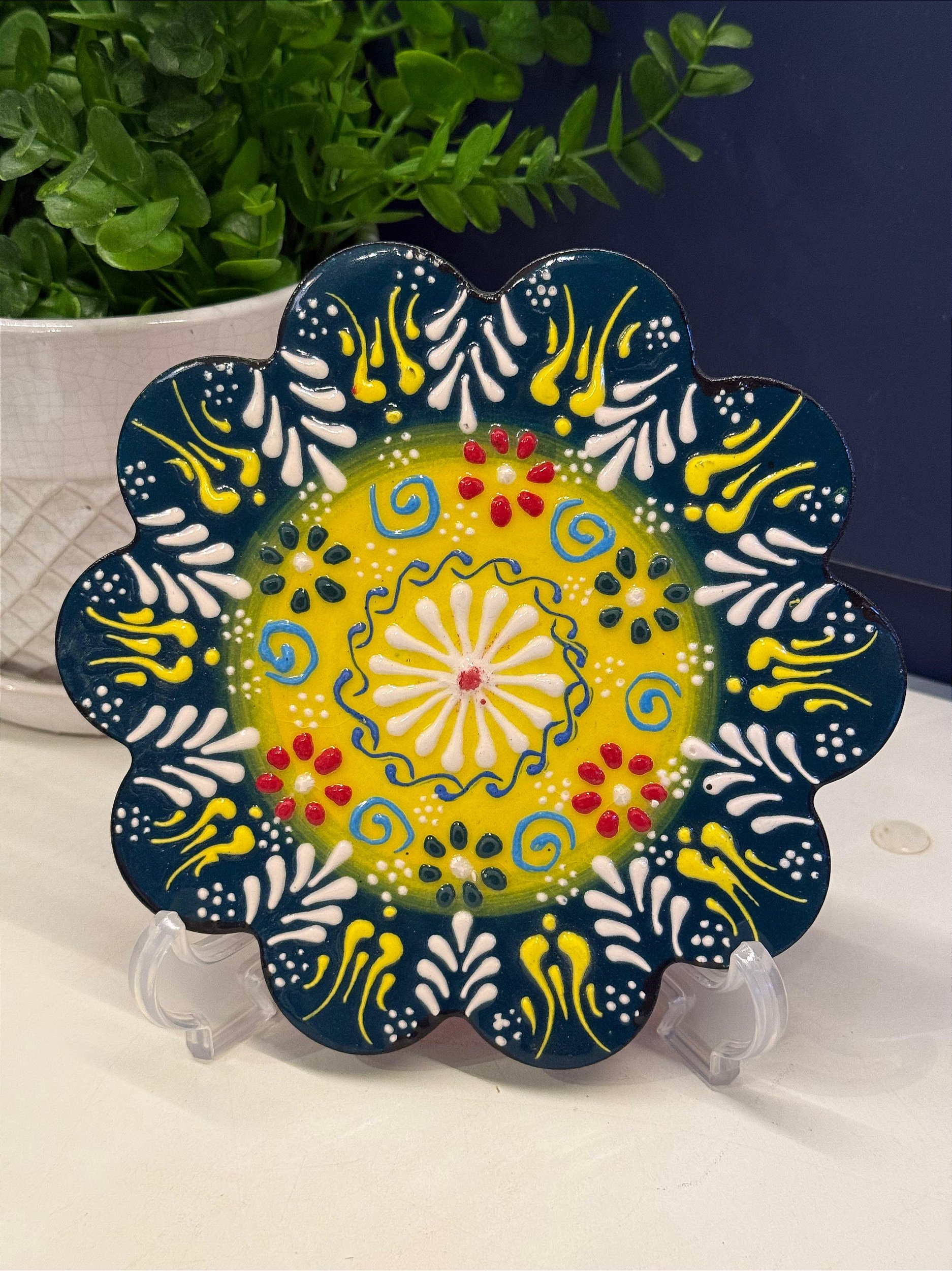 Os descansos de travessa e panelas da Marrocos For You são produzidos em cerâmica e desenhados com o maior capricho! Além de protegerem seus móveis e panelas, acrescentam um toque único à sua mesa de jantar. Também podem ser colocados suportes e usados na parede de forma decorativa.