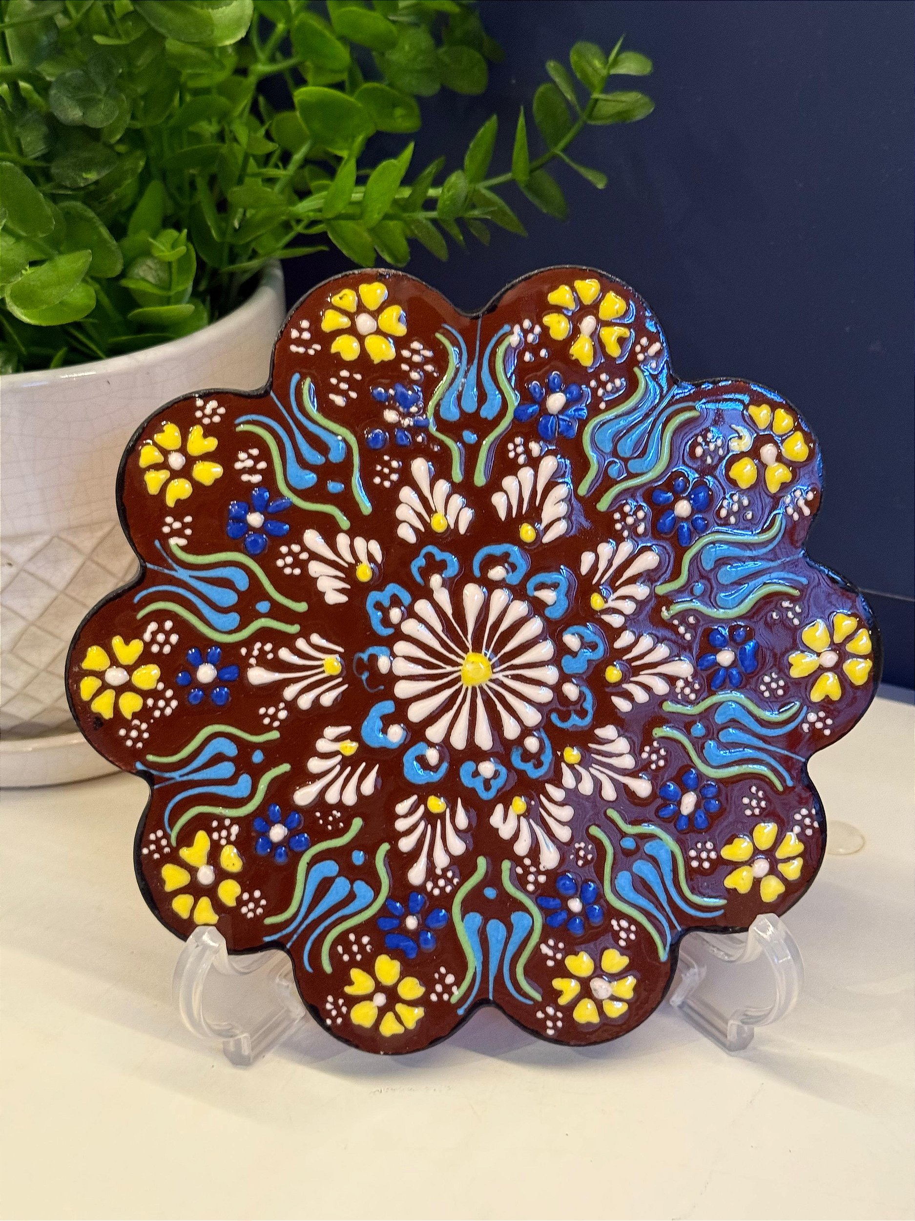Os descansos de travessa e panelas da Marrocos For You são produzidos em cerâmica e desenhados com o maior capricho! Além de protegerem seus móveis e panelas, acrescentam um toque único à sua mesa de jantar. Também podem ser colocados suportes e usados na parede de forma decorativa.