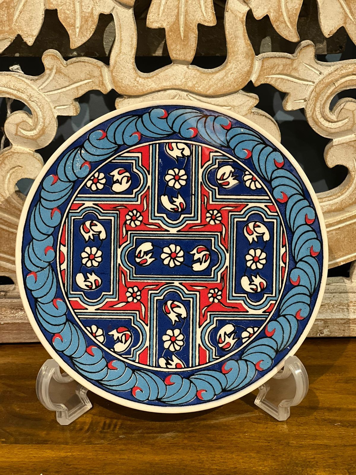 Descanso de Travessa e Panela - Turca - Redondo - Cerâmica - Vermelho e Azul
