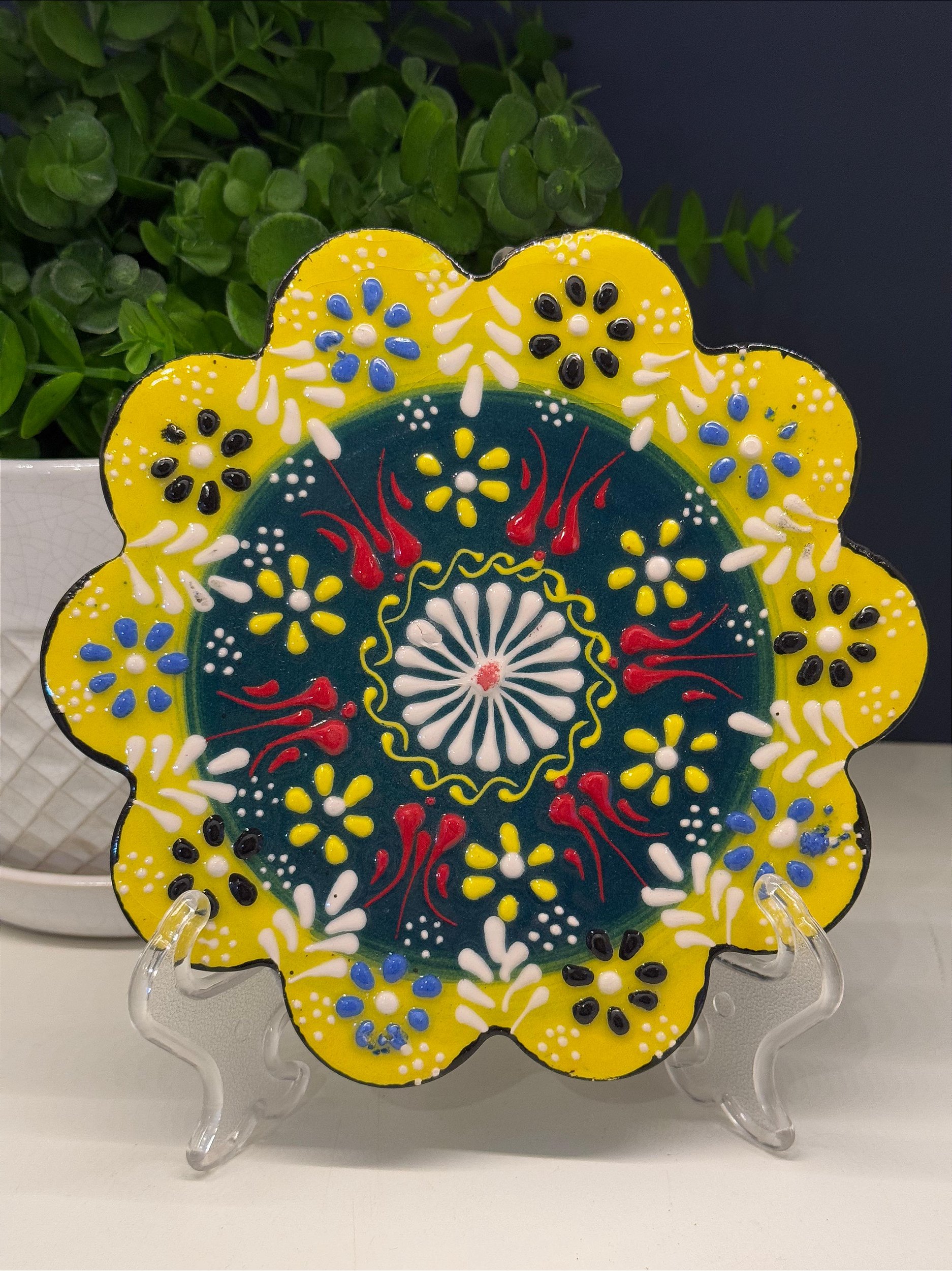 Descanso de Travessa e Panela - Turco - Cerâmica - Alto Relevo - Amarelo e Verde