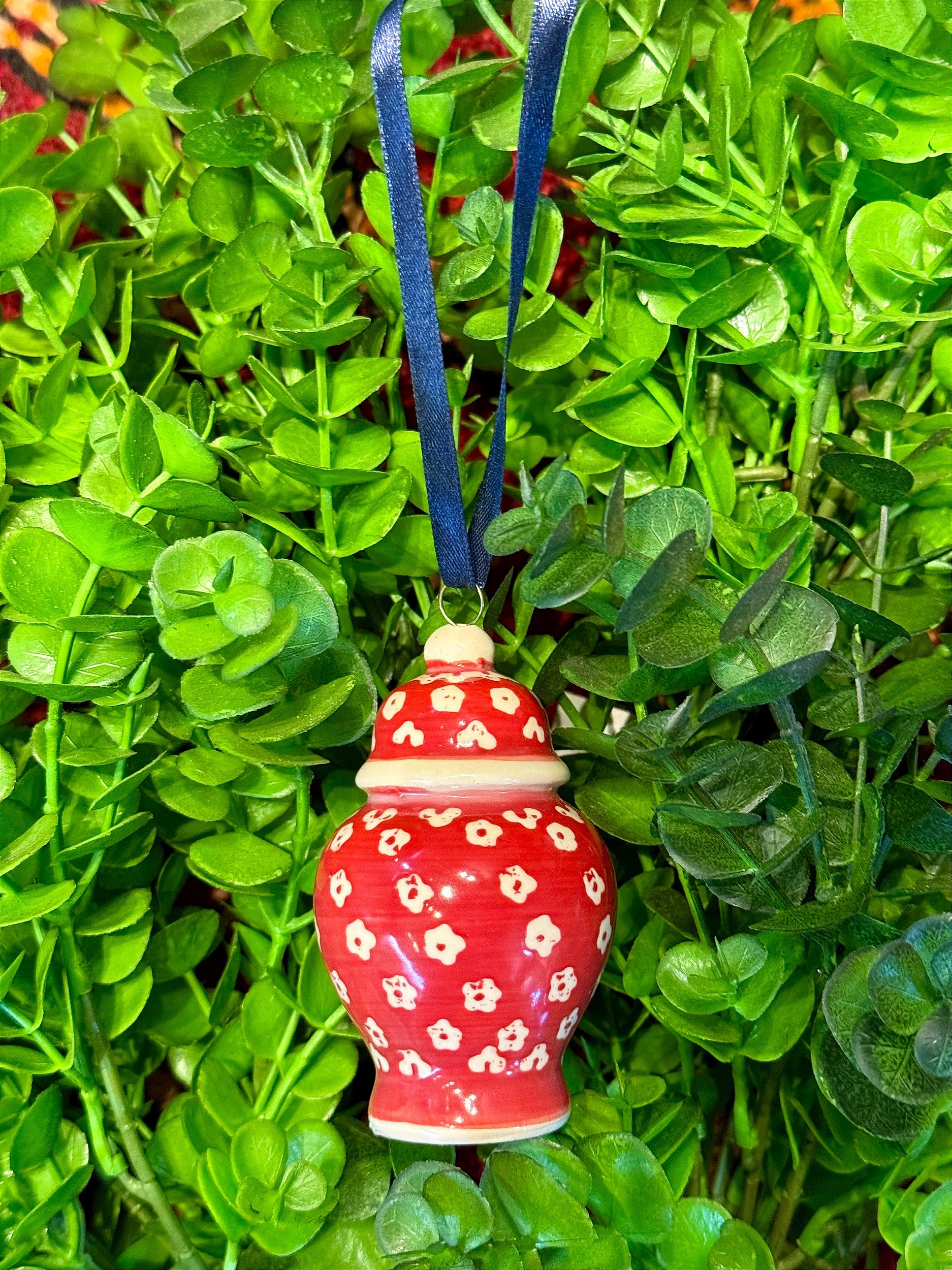 Enfeite Potiche - Árvore de Natal - Cerâmica - Vermelho e Branco