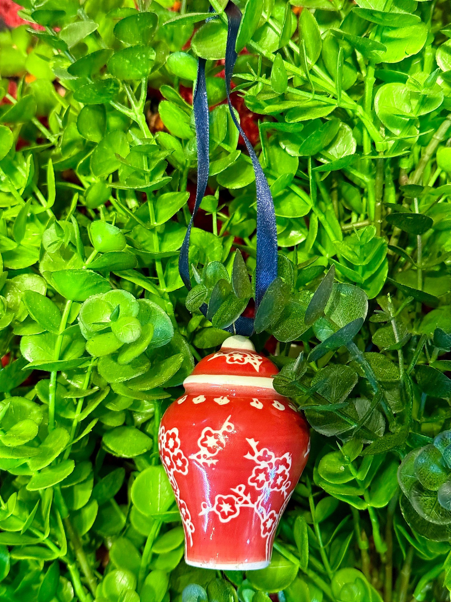 Enfeite Potiche - Árvore de Natal - Cerâmica - Vermelho e Branco