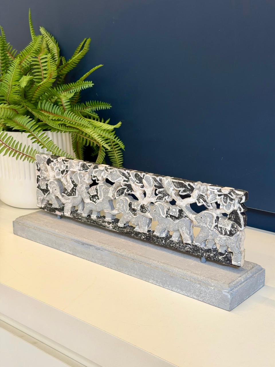 Escultura Madeira - Elefante - Preto e Cinza