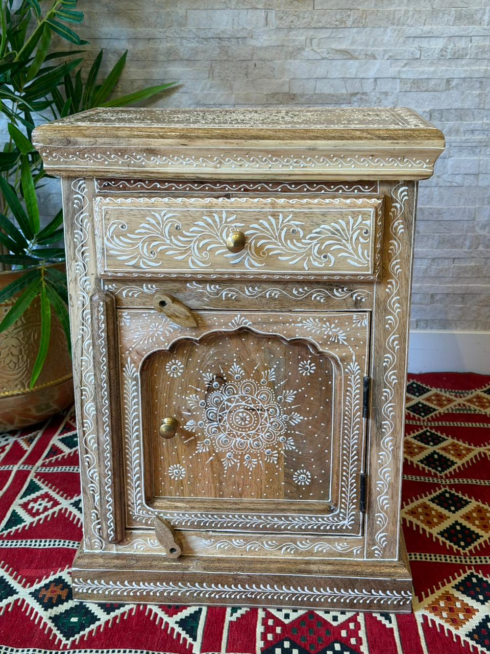 Encanto para quem ama decoração com alma. Este gaveteiro Indiano é inteiramente trabalhado em madeira e recebe delicados desenhos pintados à mão, trazendo o charme e a autenticidade do artesanato.
