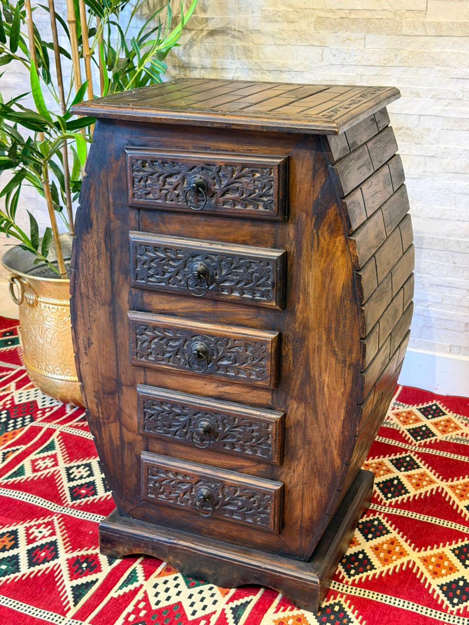 Encanto para quem ama decoração com alma. Este gaveteiro Indiano é inteiramente trabalhado em madeira e recebe delicados desenhos pintados à mão, trazendo o charme e a autenticidade do artesanato.