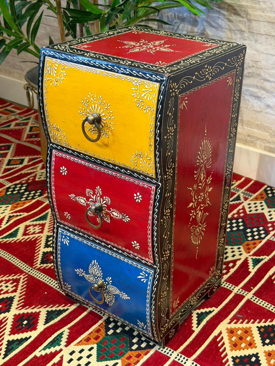 Encanto para quem ama decoração com alma. Este gaveteiro Indiano é inteiramente trabalhado em madeira e recebe delicados desenhos pintados à mão, trazendo o charme e a autenticidade do artesanato.