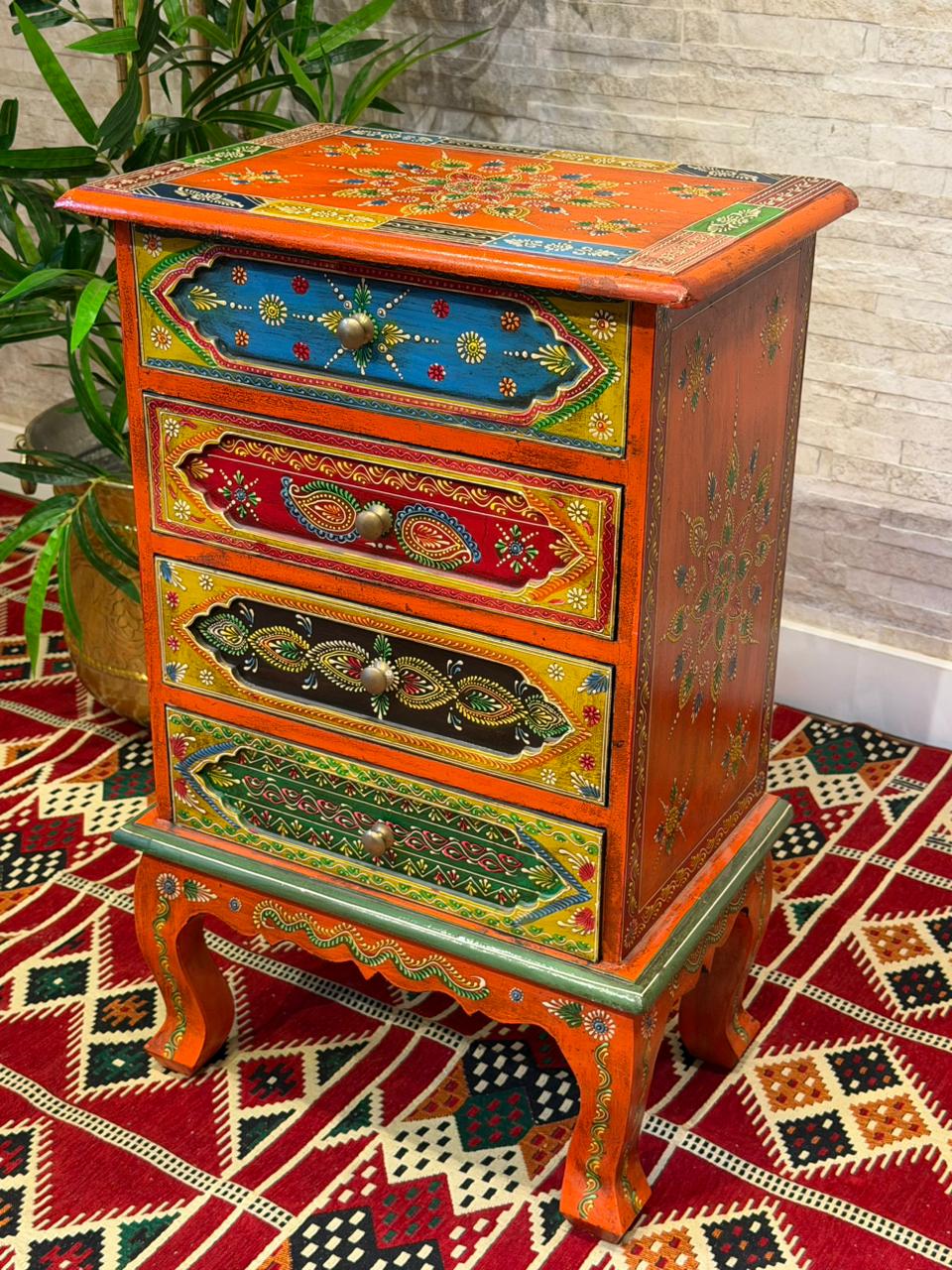 Gaveteiro em Madeira - Pintado à mão - 4 Gavetas - Laranja e Colorido